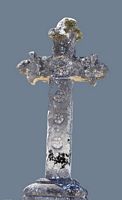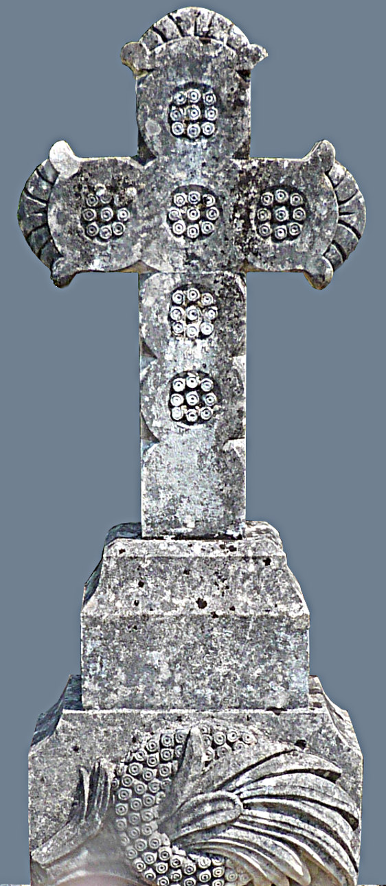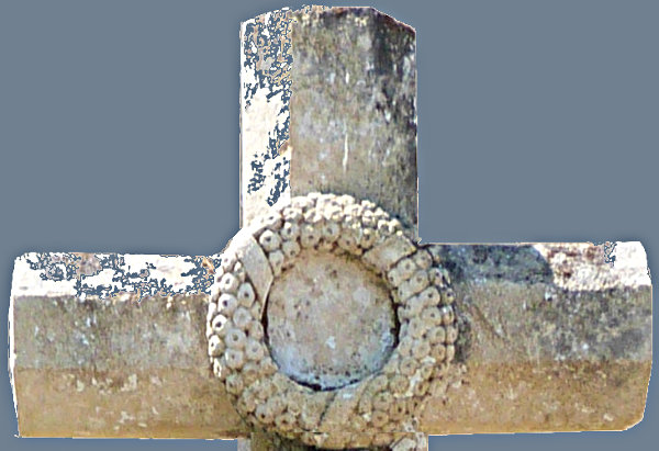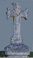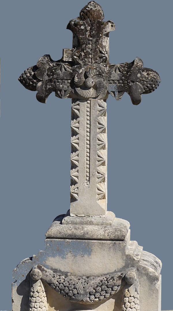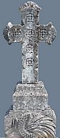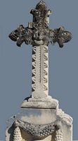 Certaines de ces croix sont fixées sur de très belles stelles de pierre travaillées : on y trouve des feuillages, des fleurs et un mystérieux décor qui fait penser à des glands.