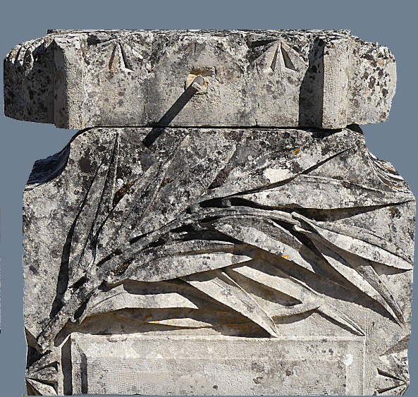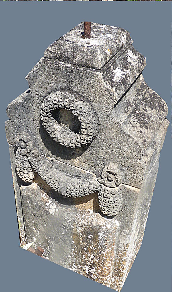 Celles qui restent sont assez simples, sans doute fabriquées par des artisans locaux. Certaines présentent des motifs gravés, mais les mousses et lichens empêchent malheureusement d'en apprécier tous les détails.