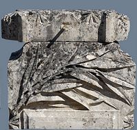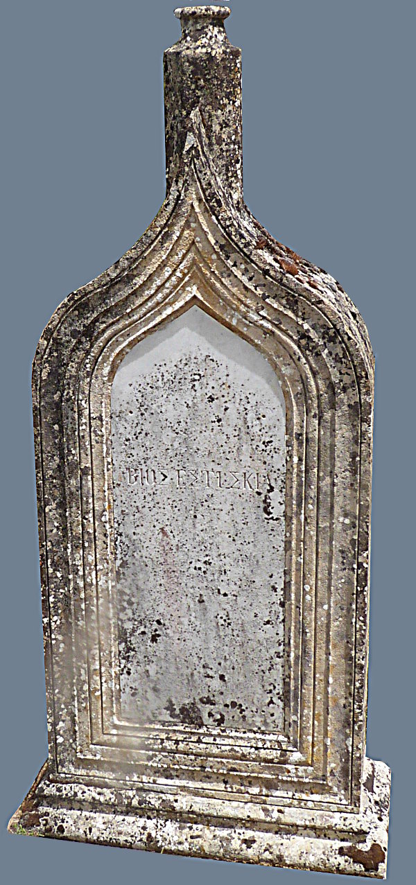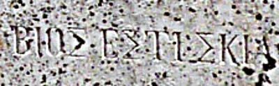 ○ A l'entrée du cimetière, une tombe avec une stèle portant une inscription ΒΙΟΣ ΕΣΤΙΣΚΙΑ (du grec ancien ?). Les graveurs étaient souvent illettrés et faisaient des erreurs en recopiant les épitaphes (chiffres écrits à l'envers par exemple)