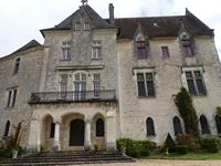 Le château présente un plan en U, partiellement refermé par une aile, comme on peut le voir sur la photo aérienne de l'Aéro-club Perigord-ULM.