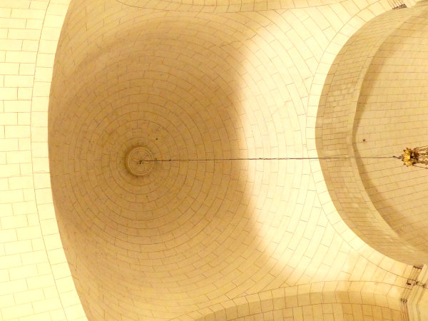 À l'intérieur de l'église, la coupole a été refaite à une époque moderne à la croisée du transept. On remarque l'ancienne clé de voûte posée sur le sol en pisé ,