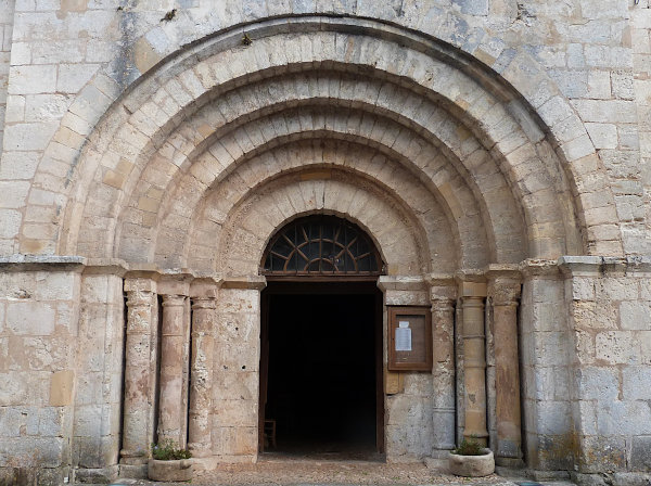 Malgré ses multiples restaurations, l'église a heureusement conservé son portail roman à cinq voussures, trois qui s'appuient sur des colonnes et deux sur des pilastres