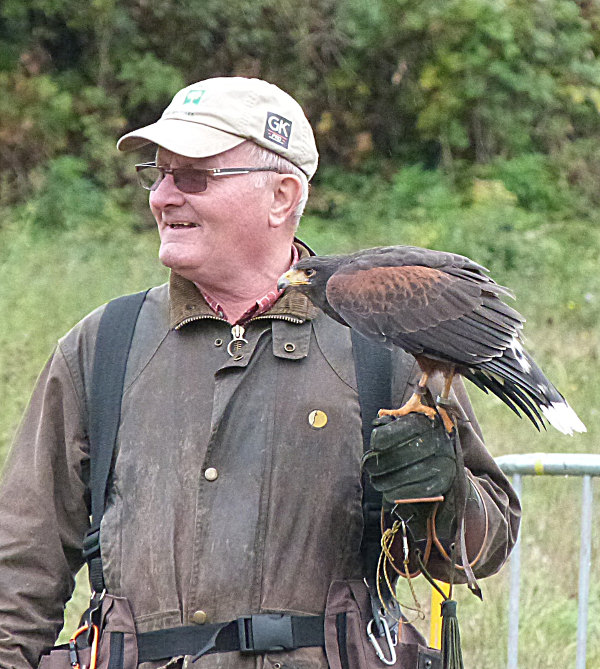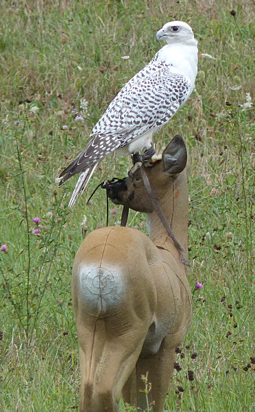 c'est le cas des différents faucons (pélerins, gerfauts ...). On a pu admirer le travail de ces oiseaux qui s'élèvent très haut pour foncer sur un leurre suspendu à un drone